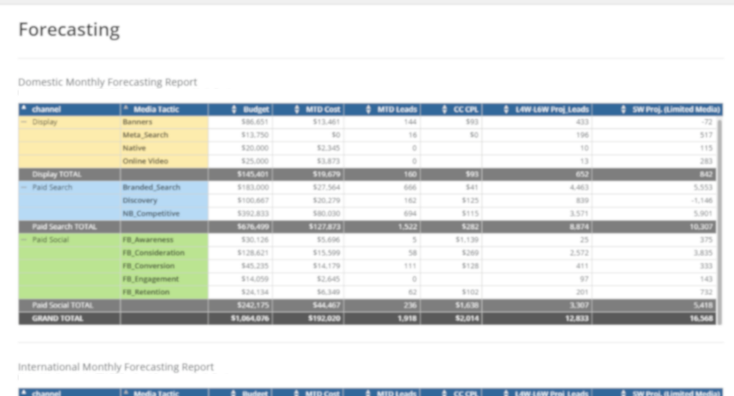 Used coefficients to build a forecasting dashboard to project leads for each media tactic based on the monthly budget and the previous month’s leads.
